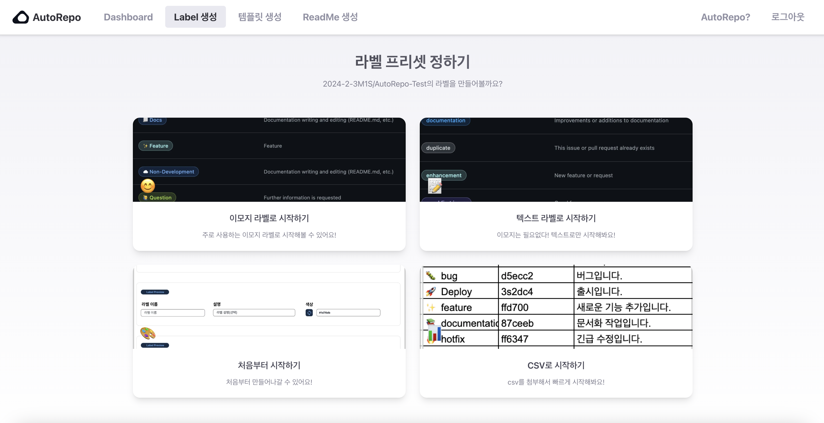 깃허브 연동으로 딸깍 한 번이면 세팅이 끝나는 '레포 세팅 자동화 서비스 AutoRepo' 입니다! 🔗 AutoRepo 사용해보기