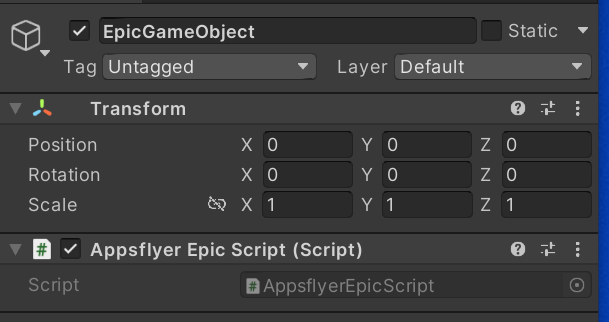 - Add the AppsflyerScript to an empty game object (or use the one in the scenes folder):