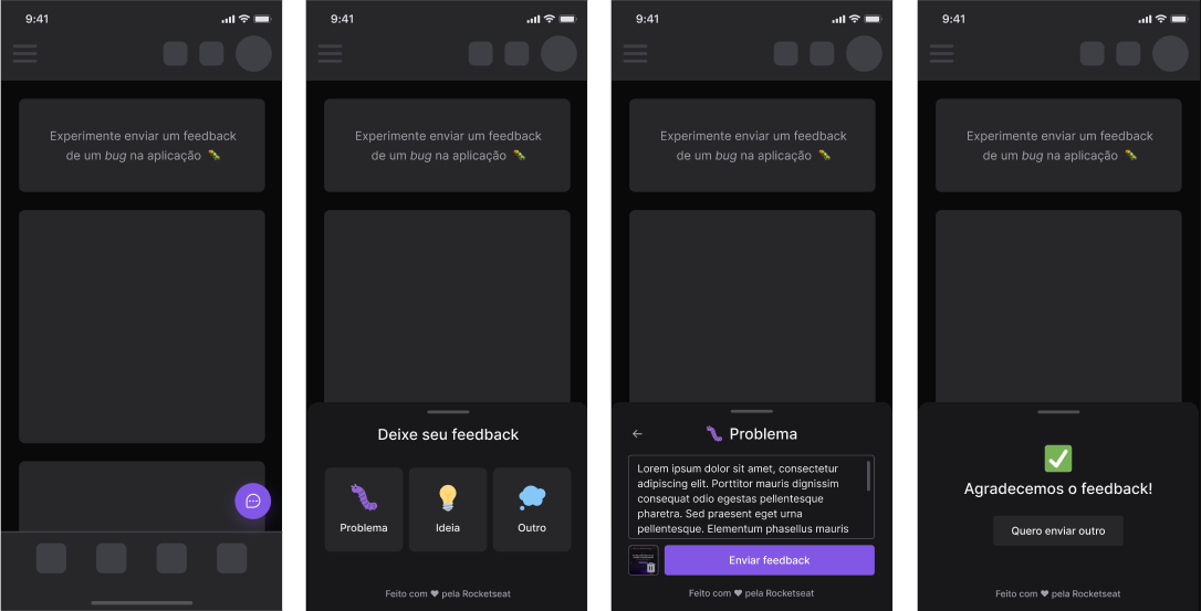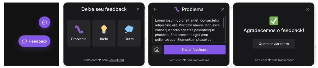 - Tipos de feedback (Problema, Ideia, Outro)