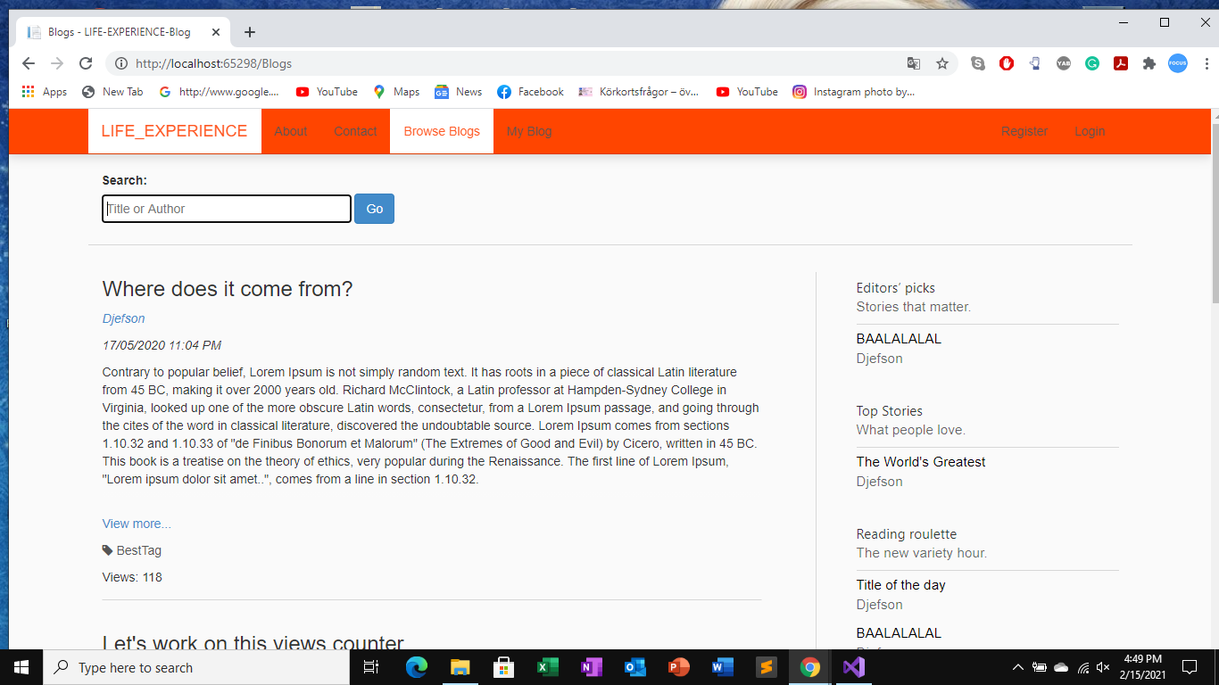 - A simple project I am continually developing in my spare time to improve my skills with MVC 5