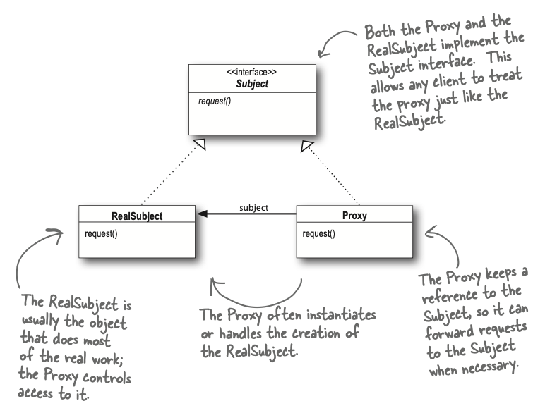 - Proxy에서 RealSubject의 인스턴스를 생성하거나, 그 객체의 생성 과정에 관여하는 경우가 많다.