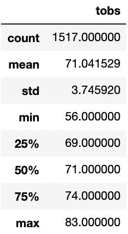 There is an investment opportunity to invest in a surf and ice cream and surf shop in Oahu, Hawaii. There's an investor interested in the opportunity, but he's concerned that the weather in the rainy months of the year will prevent the business from being lucrative year-round. This analysis specifically looks at trends in temperature data in the months of June and December in Oahu to determine if the surf and ice cream shop business is sustainable year-round.