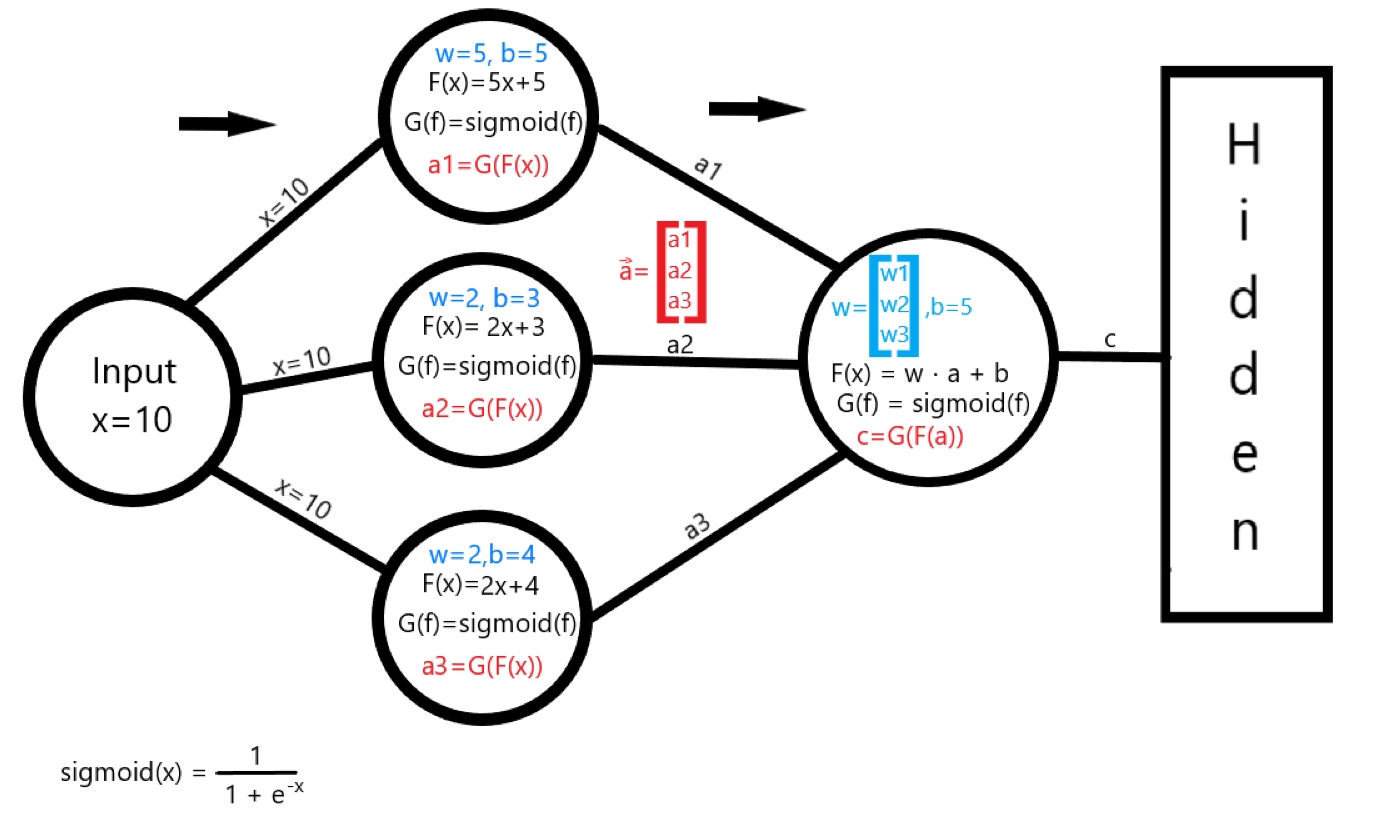 If we had to define neural networks with what we already know, we'd define them as multiple interdependent regressions on steroids. The 'interdependent' part comes from the fact that the inputs from one layer of little regression units(neurons) come from the output of the previous layer. So can think of each of the neurons[fig 2] of the neural network as a separate regression, where each neuron layer J gets its inputs from J - 1 and outputs its 'activations' to J + 1. But lets not get ahead of ourselves.
