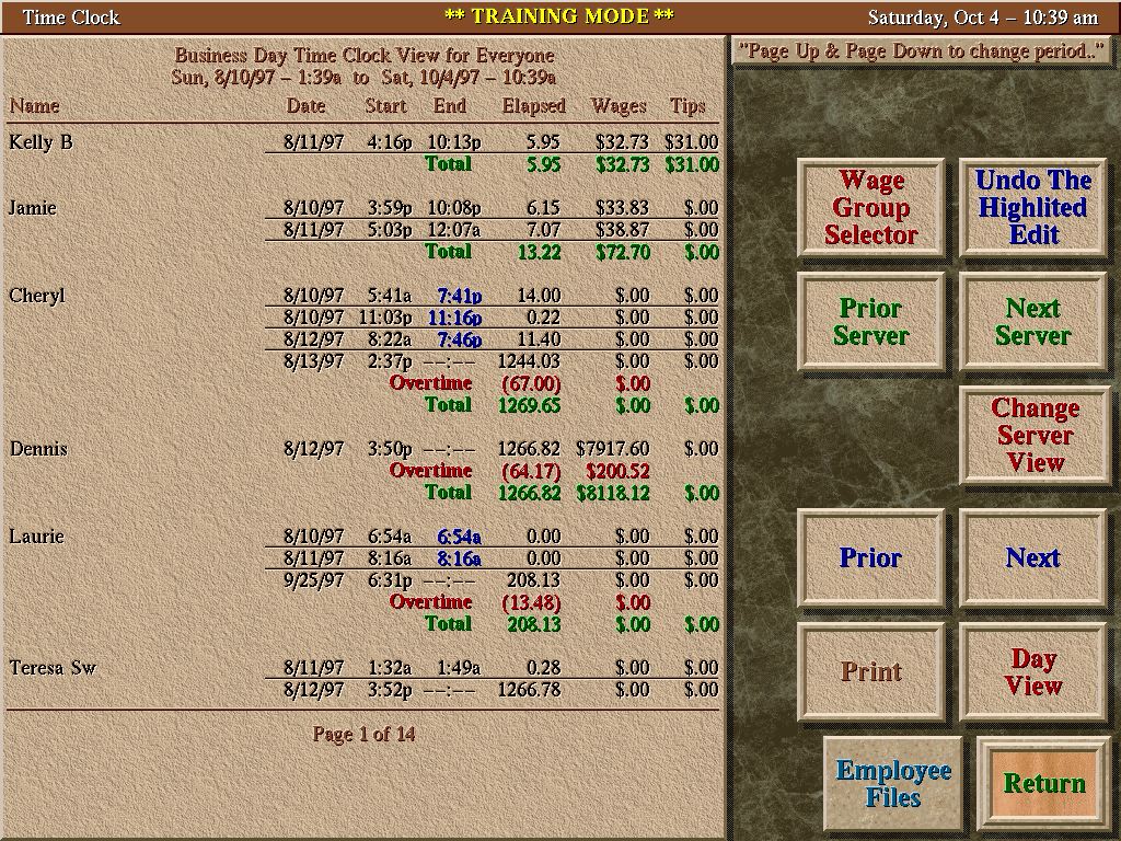 ViewTouch doesn't just store your data—it keeps your entire transaction history in RAM for perfect accuracy and lightning speed. Auditors can see compliance across every period. Control non-cash revenue adjustments and labor costs, including non-intuitive details, shift by shift, weekly, monthly, quarterly, and yearly.