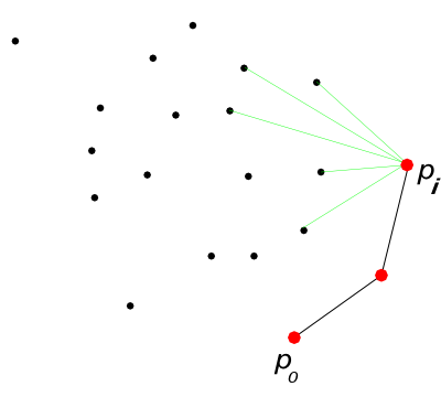 $i$ -м шаге мы взяли такую точку, что все остальные лежат по «правильную» сторону отрезка$(p_i, p_{i+1})$ .