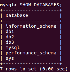 SHOW DATABASES;Setelah di eksekusi, akan muncul nama-nama Schema yang ada didalam database