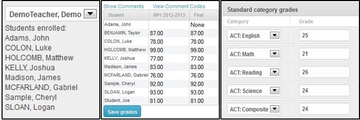 These modules track courses, enrollments, marking periods, class periods, marking period grades, student awards, standardized tests information, and results (ex: SAT, ACT, PLAN, etc). SWoRD stores marking period grades and final grades; these grades can then be generated into a report card or transcript. At present, SWoRD supports integration with the free online gradebook Engrade.