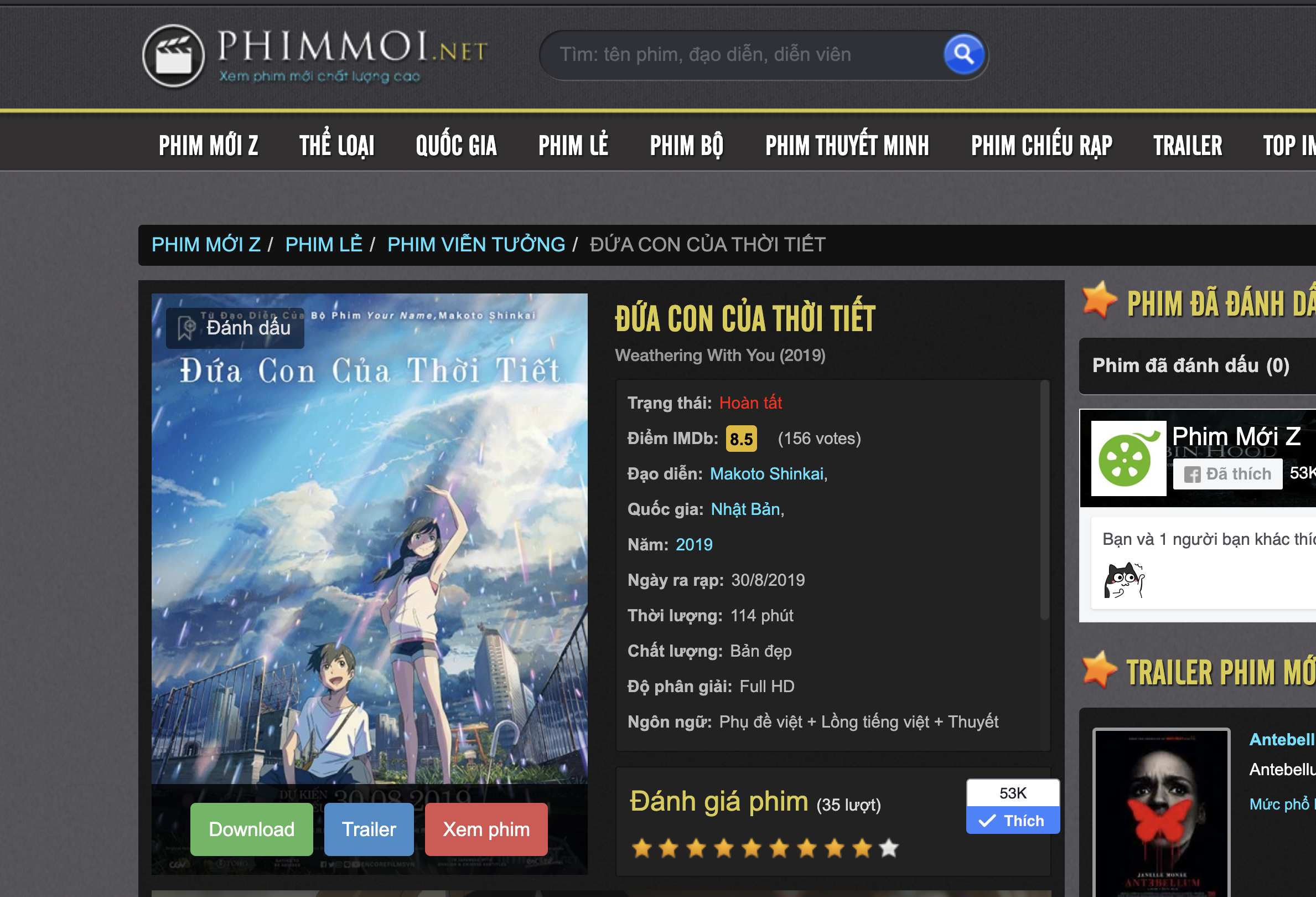 Unblock watching online feature on phimmoiz.net/phimmoizz.net from any foreign countries.