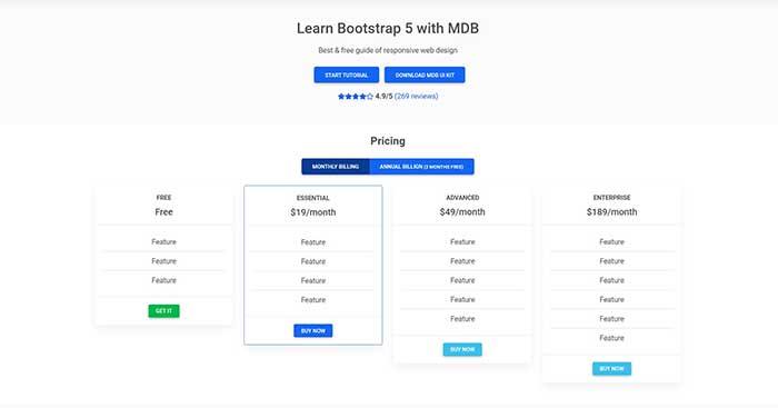 All of the templates were created with MDB 5 UI KIT (Material Design for Bootstrap 5).