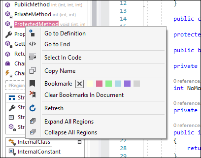 - Filter items by kind (method, property), access (public, private), name and bookmark
