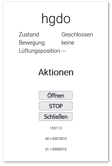 - Paketdienst-Funktion (Fahrt auf Lüftungsposition per Code, 15s später automatisches Schließen) --> nur zulässig mit Lichtschranke! (noch in Erprobung)